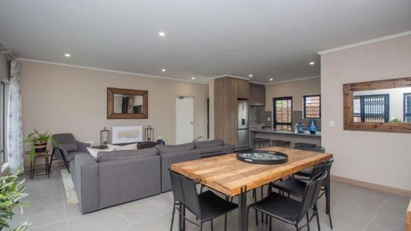 Each home offers a light-filled open-plan design, featuring a stylish kitchen flowing seamlessly into the lounge and dining areas. Large doors lead out to a covered patio with a built-in braaiideal for quiet outdoor moments or hosting family and friends. Wide corridors and smooth, level flooring make daily movement effortless throughout the home.