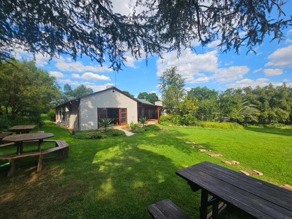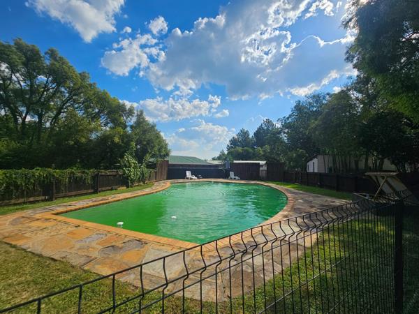 Spacious 4-bedroom, 2.5-bathroom home with two large living areas, a fireplace, and an entertainment space leading to a covered patio and braai area. The swimming pool adds to the lifestyle appeal. Perfect for use as a residence or conversion back into a guesthouse or business premises.