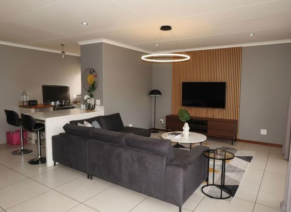 Outdoor living is enhanced by a large garden, perfect for pets and outdoor activities, and the property is totally walled with a fence, access gate, security gate, and burglar bars for enhanced security. Ample parking is available with a double garage and additional driveway space for up to five vehicles. The home is also fibre-ready, catering to modern connectivity needs. This wheelchair-friendly property offers a substantial floor size of 235 sqm, presenting a versatile canvas for its new owners.