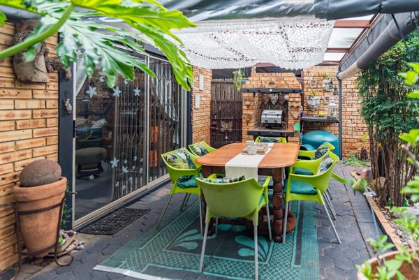 Step outside to find a beautifully landscaped and manicured garden, visible from a private patio area with a built-in-braai for outdoor gatherings or simply unwinding after a long day. Imagine sipping your morning coffee surrounded by nature, or hosting barbecues in your private oasis.