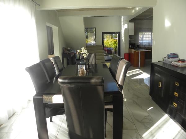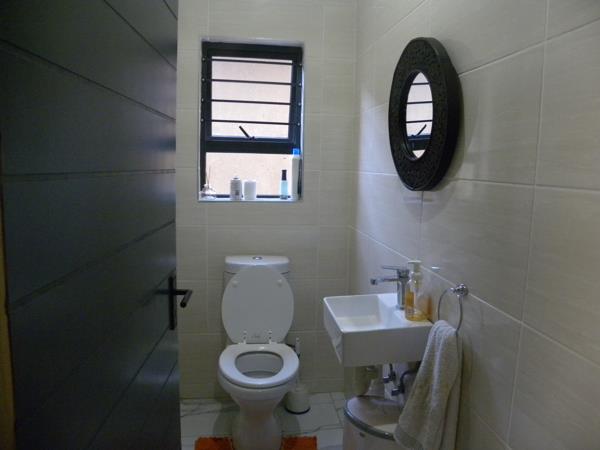 The ground floor is designed for open-plan living, with a seamless flow between the kitchen, dining area, TV room and lounge. The lounge opens directly to a swimming pool, creating the perfect space for entertaining or relaxed family time. A full bathroom and guest toilet is conveniently located on this level, along with a separate study and a walk-in pantry.