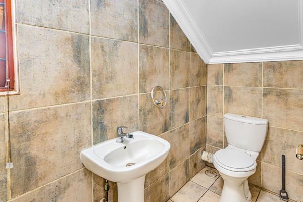 Upstairs, three bedrooms offer laminate flooring, ample cupboard space, and plenty of natural light. The main bedroom includes air-conditioning, a luxurious en-suite bathroom with spa bath, shower, and double basins, plus access to a private balcony with Magaliesberg mountain views. The remaining two bedrooms share a full family bathroom, while a study nook adds versatility.