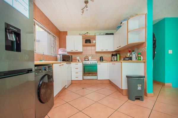 Enjoy the outdoors from the covered patio, which overlooks a vast, private garden. This spacious area is perfect for entertaining with a built-in braai, making it an entertainer''s paradise.