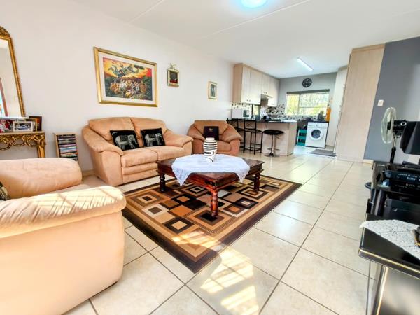 It features 2 bedrooms with built-in cupboards, a full bathroom, and a spacious open-plan living area. The modern kitchen is generous in size, fitted with plenty of cupboard space, making it both practical and stylish.
