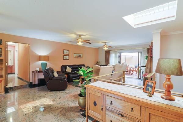 Lovely open-plan lounge (granite tiles/underfloor heating) with slider and security gate to covered patio. The pool is solar heated.