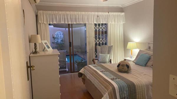 Main bedroom with slider to pool, aircon and en suite bathroom.