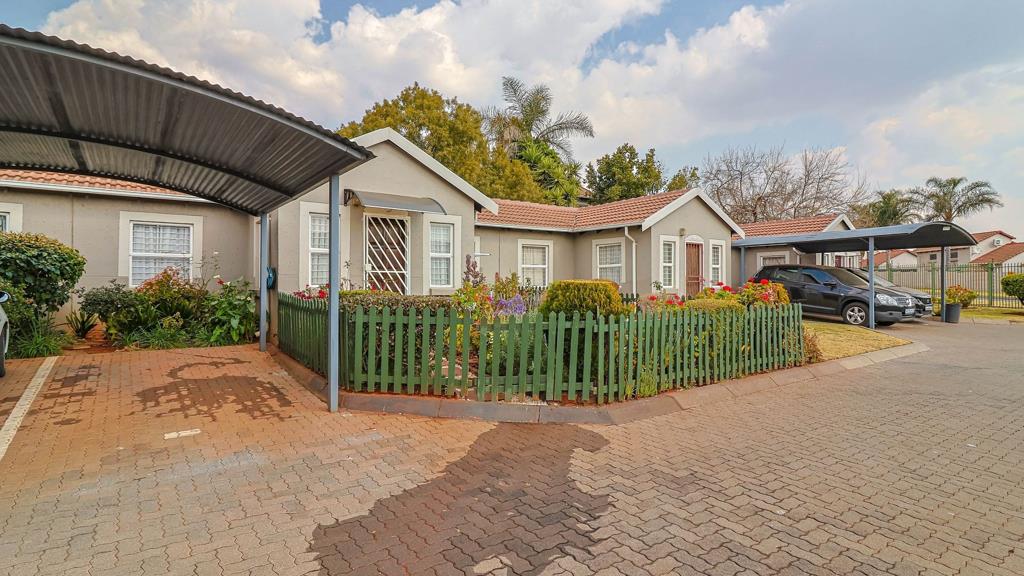 Enter into a beautiful, private fenced garden, beauty created with love and hard work!! Awning covering front door/security gate. Tiled lounge. Compact kitchen, with granite tops, new solid hob and under counter oven, single sink, softclose on the doors. Pot cupboard on wheels. Main bedroom (tiled) 9 BIC, 2nd Bedroom, tiled Laundry cupboard/washing machine installed. 5 smaller cupboards for storage. Bathroom, has shower in bath, loo and vanity. Single carport. Pool in complex, play area, tennis court and clubhouse in complex. 24hr guard.