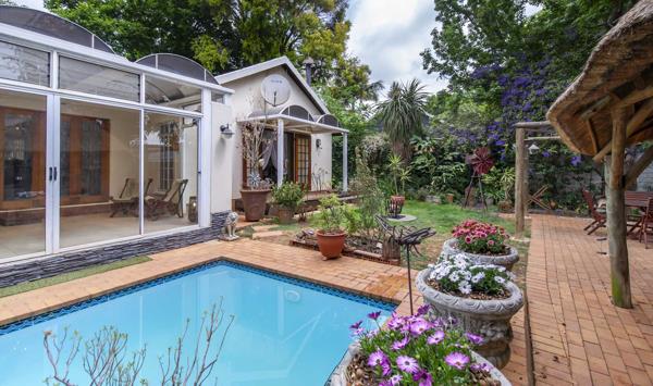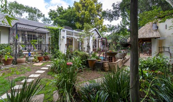 Situated on a quiet corner stand, surrounded by high walls and large trees, lies a true fairy tale garden, right out of a storybook, complete with a sparkling splash pool and 2 thatched lapas, of which one is equipped with a gas barbecue. It comes complete with a catio to safeguard your furry babies.