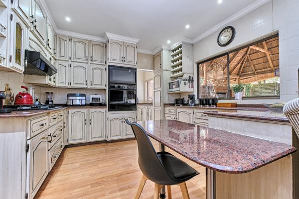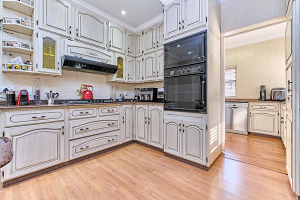 The modern kitchen is a chefs delight, fitted with granite countertops, a gas hob, and an eye-level oven, complemented by a separate scullery and laundry for ultimate convenience.