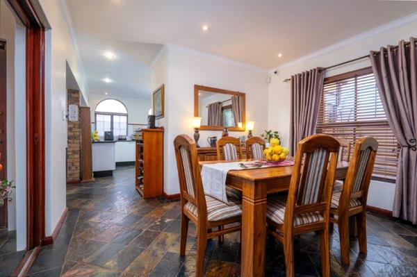 Entertainment is effortless under the lapa with built-in braai, overlooking a sparkling pool and beautifully landscaped garden.