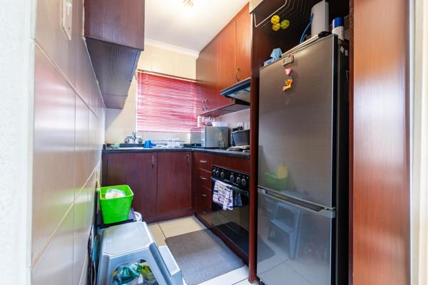 Enter though security gate. Newly tiled lounge. Well designed kitchen with lots of cupboards, solid hob and under counter oven, extractor, single sink. Main bedroom (tiled) 8 BIC, 2nd Bedroom, tiled (4BIC+4small) Bathroom, has shower, loo and vanity. Single carport. Pool in complex, play area, tennis court and clubhouse in complex. 24hr guard.