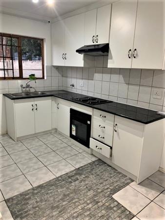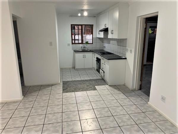Open plan kitchen with space for one under counter appliance. ( additional plumbing point in garage )