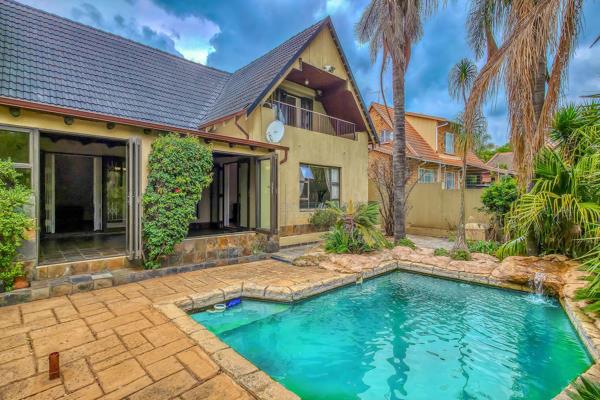 Designed for effortless entertaining, the home offers a spacious TV room, a grand indoor braai area, and an elegant bar ideal for hosting guests. Stacked doors open to a landscaped garden, where a sparkling pool provides the perfect space to unwind.