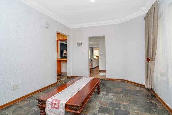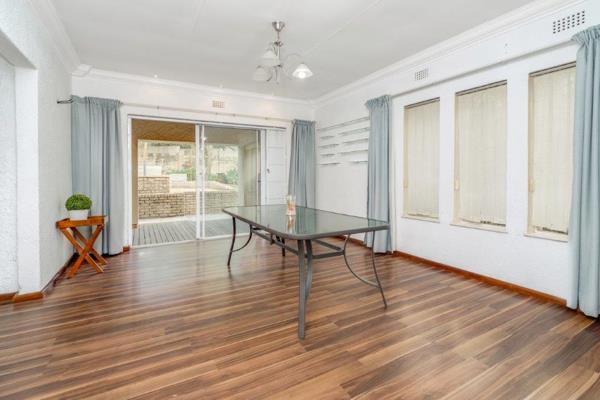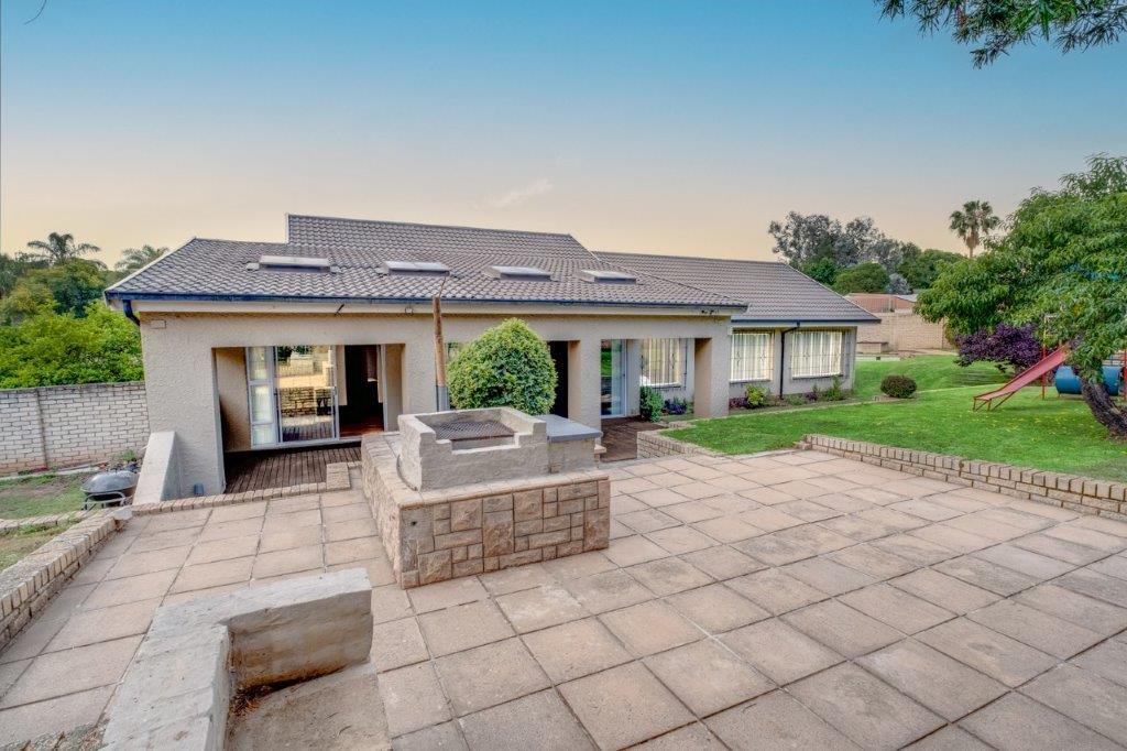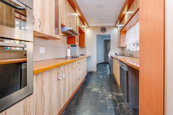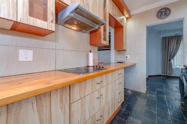 The established garden features a sparkling pool alongside a spacious lapa with a built-in braai, creating a private outdoor retreat. The well-planned kitchen offers ample appliance space, room for a double-door fridge, and a convenient serving hatch. A fitted study with reliable internet makes working from home both practical and comfortable.