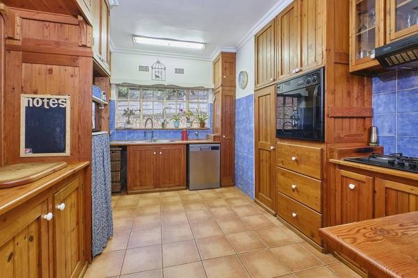 Set along a charming, sloped driveway, this abode welcomes you through either a convenient side entrance or direct access via the kitchen. The kitchen offers a warm and functional culinary space, featuring a gas hob with electric oven, cabinetry, a pantry, double sink, and room for two appliances. A compact island-style nook adds to the practicality, while space is provided for a single-door fridge.