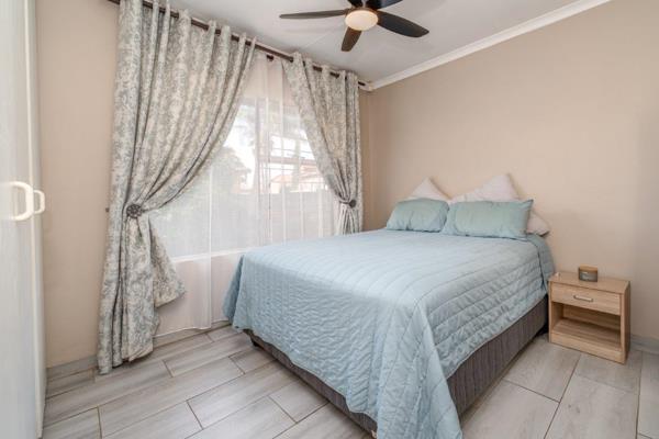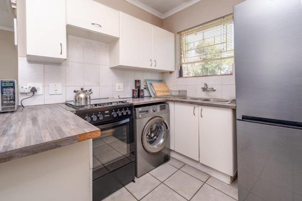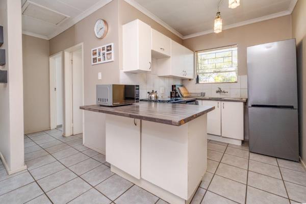 The modern, well-designed kitchen offers ample cupboard space, a convenient breakfast nook, and a gaselectric hob 3 x gas and 1 electric plate, making everyday cooking both practical and enjoyable.