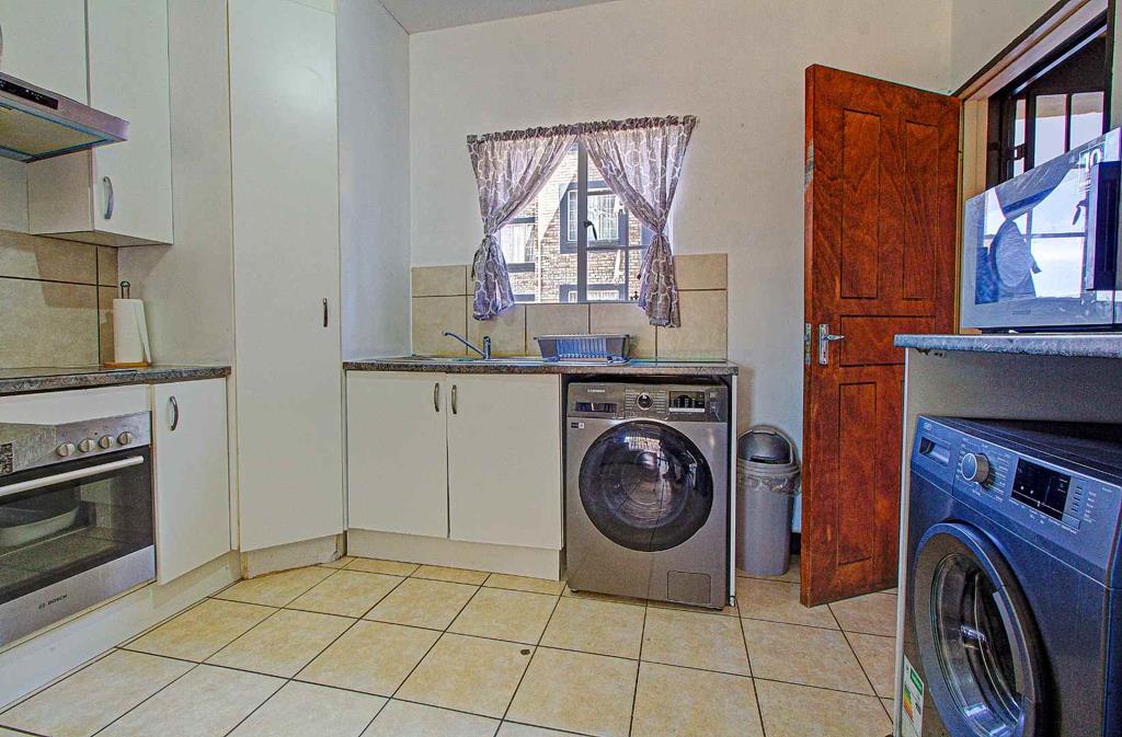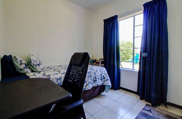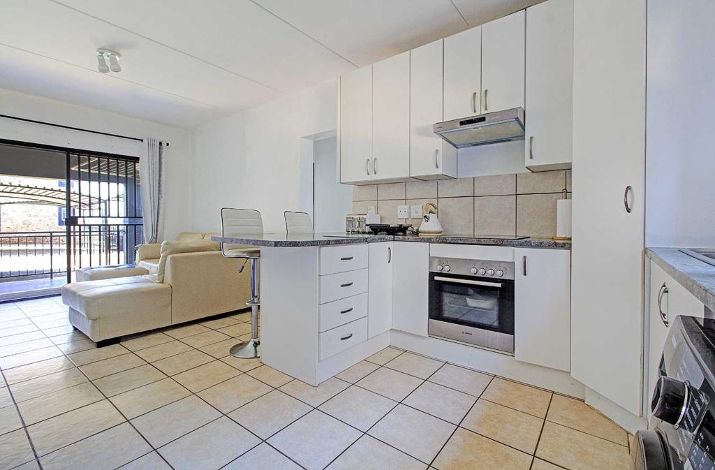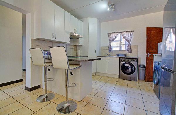 The kitchen seamlessly transitions into the open-plan living room, creating a spacious and inviting atmosphere. Both areas are adorned with easy-to-maintain tiles, enhancing the home''s modern appeal. From the living room, step out onto your private covered patio, complete with a built-in braaiperfect for entertaining guests or enjoying a peaceful evening outdoors.