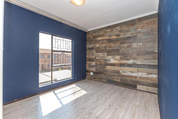 The apartment features two well-sized bedrooms, providing ample space for relaxation and rest. The main bedroom stands out with its stylish feature wall and offers generous cupboard space to accommodate all your storage needs.