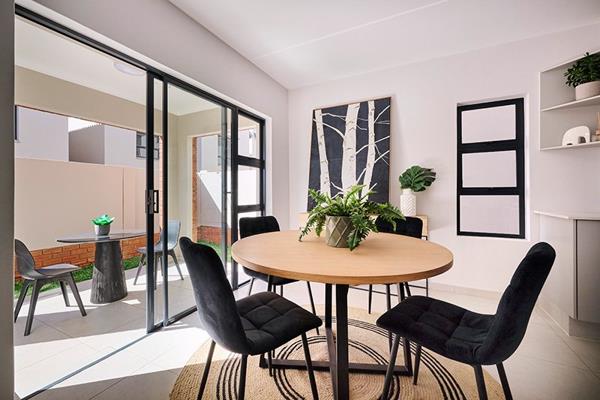 Open-Plan Lounge & Dining Room, beautifully tiled and flowing onto your private patio overlooking your pet-friendly private garden.