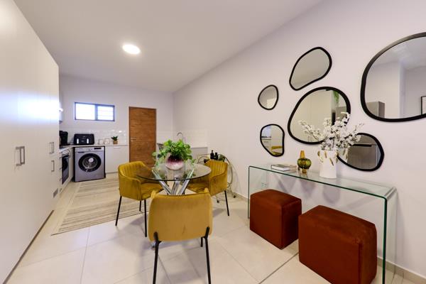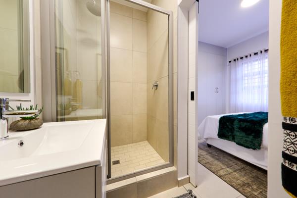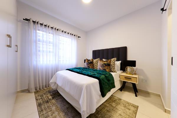 The well-appointed kitchen is fitted for a fridge and two appliances, includes a pantry, linen, and broom cupboard, and comes with a standard gas stove. A prepaid electricity meter and individual water meter add to your convenience.
