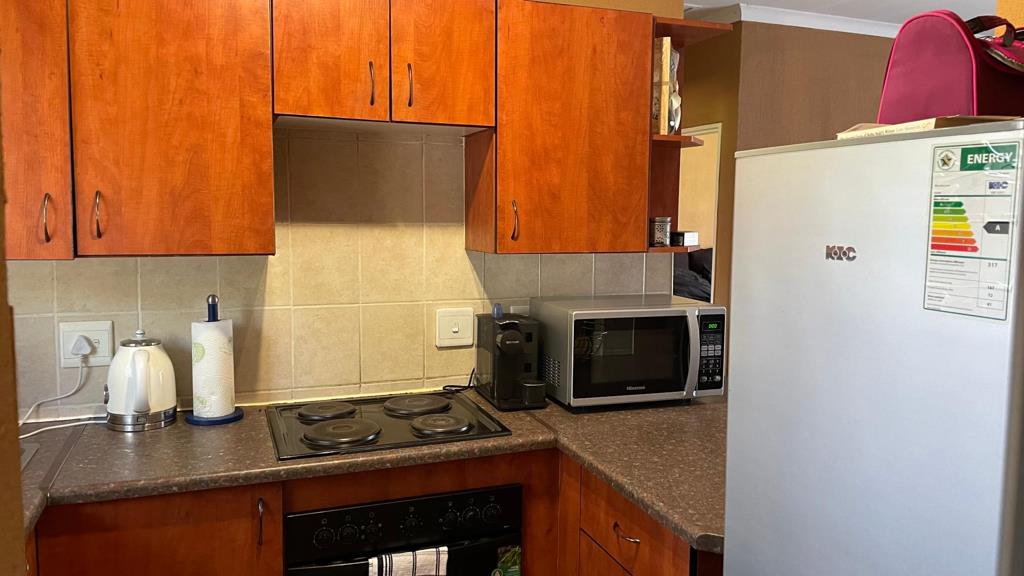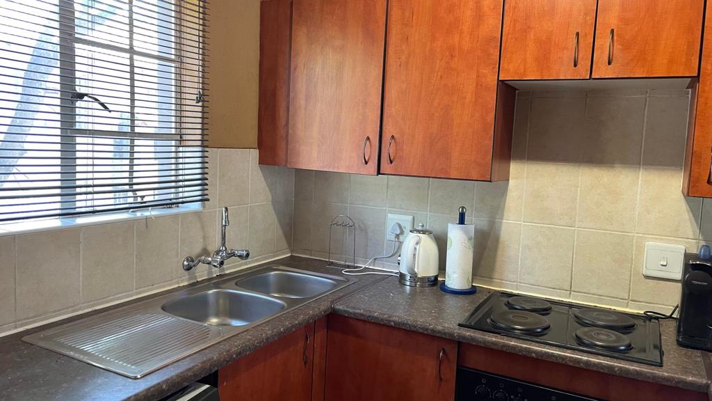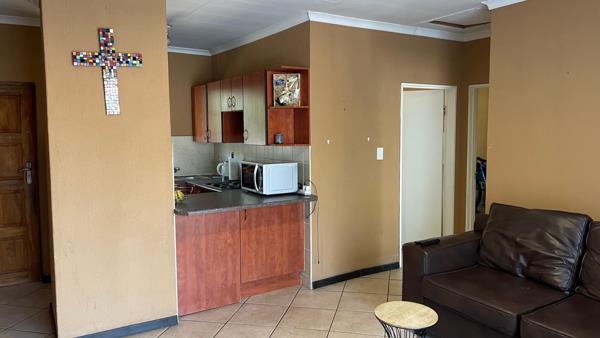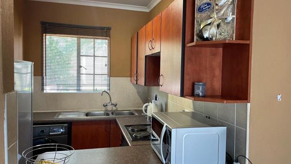 A neat well-kept apartment in a secure complex close to most schools and amenities offers an open plan kitchen with easy access flow into the lounge area that leads out to your very own balcony with a view of the manicured communal garden a great place to unwind and relax. on offer to is two sizeable bedrooms with built-in cupboards and a full-on bathroom. The complex has controlled access, and 247 security and guard post at the main gate close to public transport too. Retail Crossing, Life Style Crossing , Kwena Shopping Centre , Curro School , Trinity School , Skye College