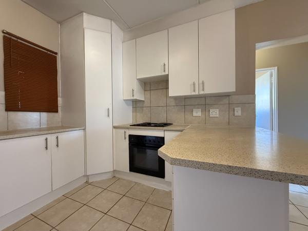 Step inside to discover a bright and airy open-plan layout, where the modern kitchen flows effortlessly into the dining and lounge areas. The lounge opens to a covered balcony complete with a built-in braai perfect for entertaining or enjoying peaceful evenings. The main bedroom features its own ensuite bathroom with a refreshing shower, while the family bathroom offers a relaxing bathtub for those end-of-day unwinds. One covered carport and an additional open parking bay ensure your parking needs are always met.