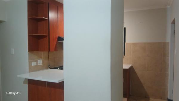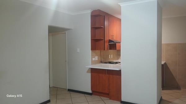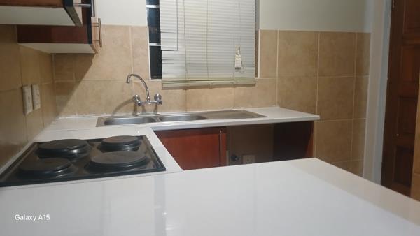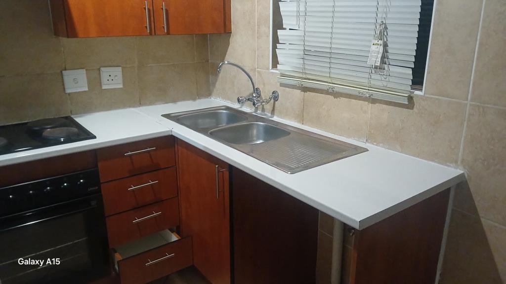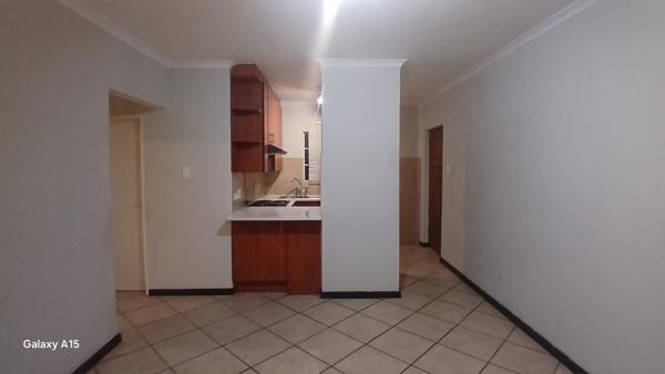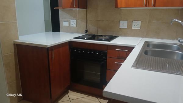 This inviting 51 sqm apartment offers a comfortable and modern living experience in the heart of Wilgeheuwel. The open-plan design seamlessly connects the living area to a well-appointed kitchen, creating an ideal space for daily life and entertaining. The kitchen features contemporary wooden cabinetry, clean white countertops, a built-in electric hob and oven, and a practical double stainless steel sink. A tiled backsplash and tiled flooring throughout the main living spaces ensure easy maintenance and a cohesive aesthetic. Crown molding adds a refined touch to the neutral-toned walls.