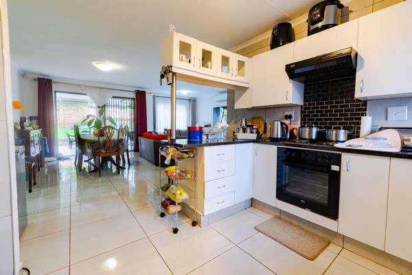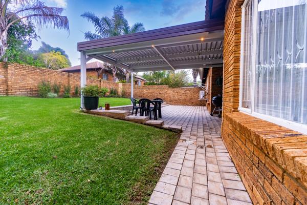 From the moment you enter, you''re greeted by a spacious open-plan lounge and dining area that seamlessly accommodates an 8-seater dining suite and a full-sized lounge seta perfect setting for entertaining guests or relaxing in sophisticated style. The living area flows effortlessly onto a generously-sized garden, blanketed in lush green lawn, and a covered patio with a louvered roof, giving you control over your outdoor space all year round. Whether you''re hosting a weekend braai or enjoying a quiet coffee on a sunny morning, this garden sanctuary wraps around the house, offering endless possibilities for landscaping and personal touches.