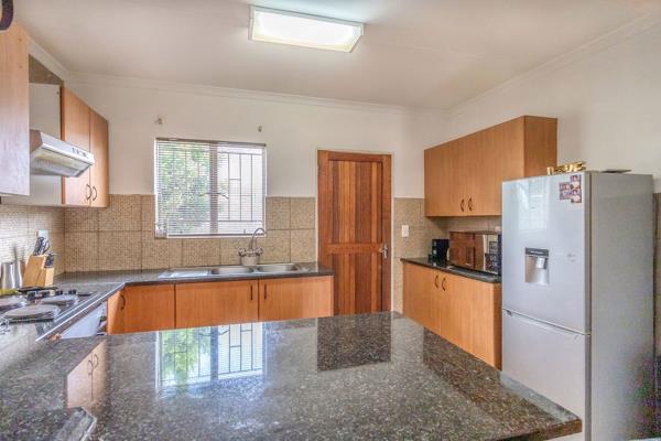 The open patio provides additional living space, perfect for enjoying time outside by a lovely garden along with a thatch braai lapa.
