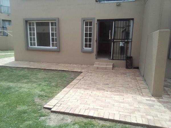 Calling on all 1 st time home buyers and Property Investors where one can achieve an excellent gross rental yield of 15%. Ground floor, 2 bedroom, 1 bathroom, openplan lounge - kitchen unit of 51 square meters. The kitchen comprises a univa under counter oven, hob, extractor fan, space for single door fridge, 1 water appliance and steel security gate and wooden kitchen door. There is also ample beech cupboards, draws, white melamine work tops and a double sink. The entire unit is tiled. The open plan lounge has an aluminium sliding door and sliding steel security gate out onto an open patio which has brick paving. The bathroom has a bath, toilet and basin (no shower). The bedrooms are reasonably sized with the 2 nd bedroom having a 2 door B.I.C. and main bedroom having a 4 door B.I.C. This complex has a kiddies play ground and jungle gym in close proximity, wrap around lawns and has pre paid electricity. The complex has palasade electric fencing on 3 sides and a plastered brick wall with electric fence on the other side. This unit has a guard station, automated gate which is manned 24 / 7. The complex has adequate visitor parking and 1 allocated carport for each unit. This unit is in close proximity to Clearwater Mall and Retail Crossing shopping centres and good schools.