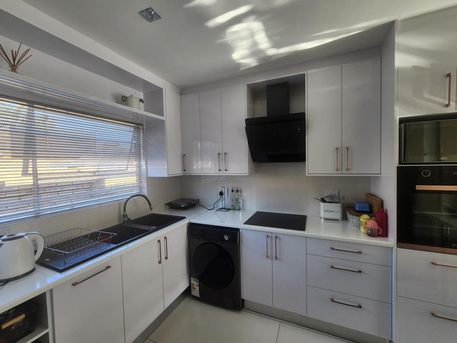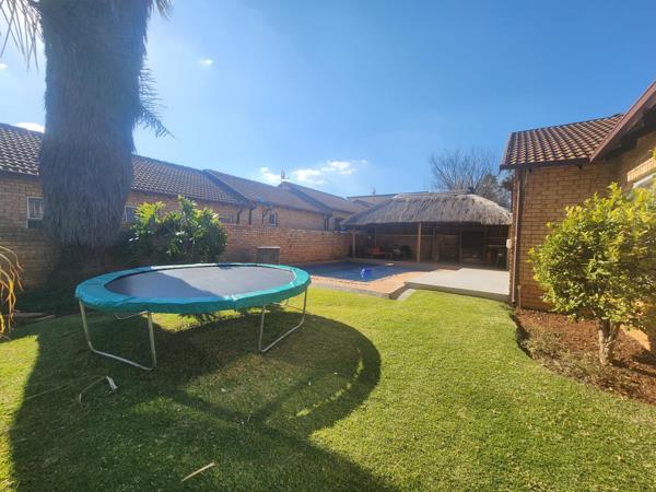 Situated in the well maintained complex this lovely simplex home offers three bedrooms, two bathrooms, beautiful kitchen, lounge, double garage and private garden with swimming pool and lapa. Semi-open plan kitchen is super modern with ample cupboard space and breakfast nook. Sunny living area leads out onto the garden with swimming pool and lapa, ideal for entertaining. Main bedroom has en-suite bathroom with shower. Family bathroom with bath. Both bathrooms have been upgraded and have modern finishes. All the bedrooms are good in size with BIC. Beautiful tiles throughout the property. Double garage with direct access to the house and visitors parking is available. Located close to all the amenities and with easy access to all the major roads.