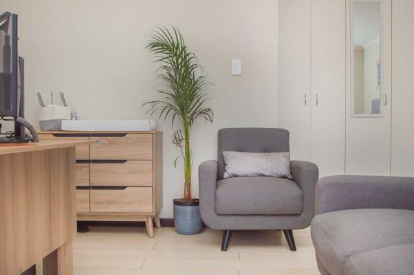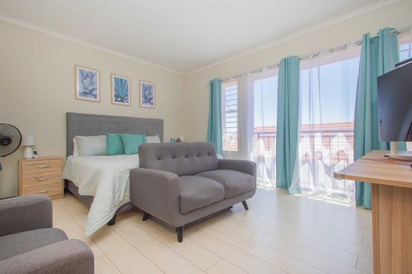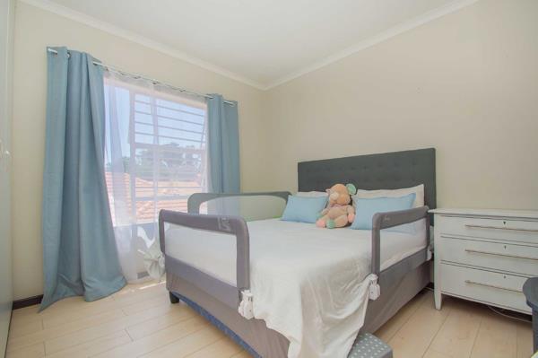 Security is well taken care of with an access gate, electric fencing, and an intercom system, ensuring peace of mind in the secure complex. Modern sustainability features include a rental solar system with 8 panels, a 5kVA inverter, and a 10kW battery. The complex also allows generators, is fibre-ready, and the home includes a heat pump geyser and a double automated garage with direct access into the house.