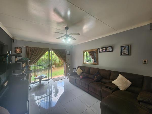 Situated in the well maintained complex this lovely simplex home offers three bedrooms, two bathrooms, kitchen, lounge, double garage and private garden with entertainment area. Semi-open plan kitchen has ample cupboard space breakfast nook, space for two wet appliance and fridge.. Sunny living area leads out onto the private pet friendly garden with lovely entrainment area. Main bedroom has en-suite bathroom with shower. Family bathroom with bath.. All the bedrooms are good in size with BIC. Tiled throughout. Double garage with direct access to the house and visitors parking is available. Located close to all the amenities and with easy access to all the major roads.