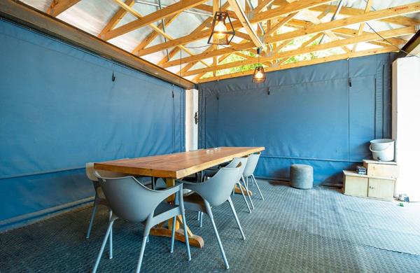 An indoor entertainment area leads out to a covered deck fitted with a jacuzzi ideal for hosting or relaxing.