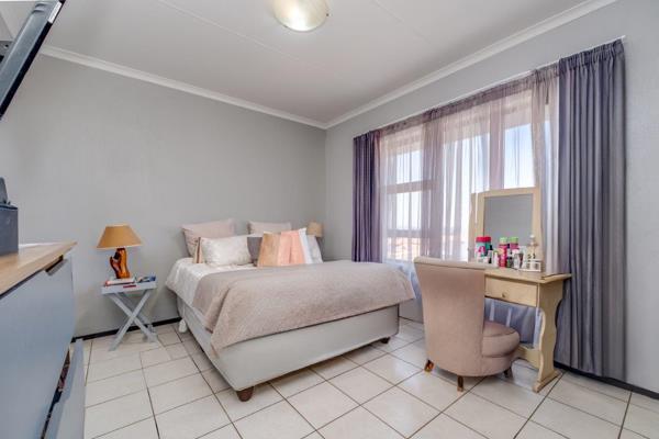 Experience superb townhouse living in this captivating home, featuring tiled reception areas that lead into lounge and dining room. The living space seamlessly extends onto a private garden with a covered patio, with stunning views and sunsets, perfect for relaxation and entertaining. The well-designed, modern, work-easy kitchen is ideal for meal preparation.