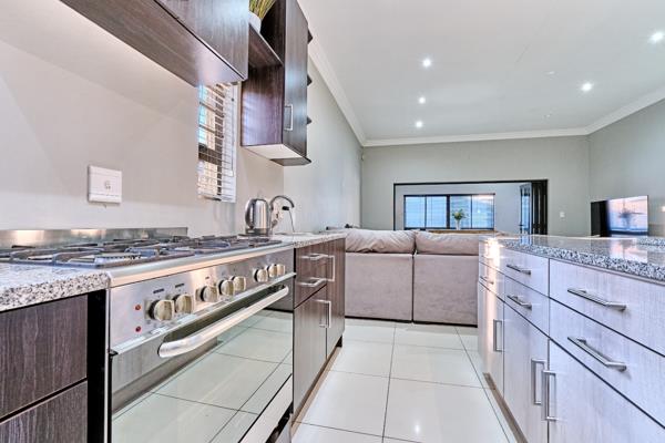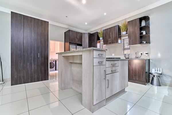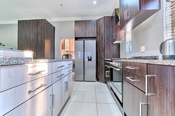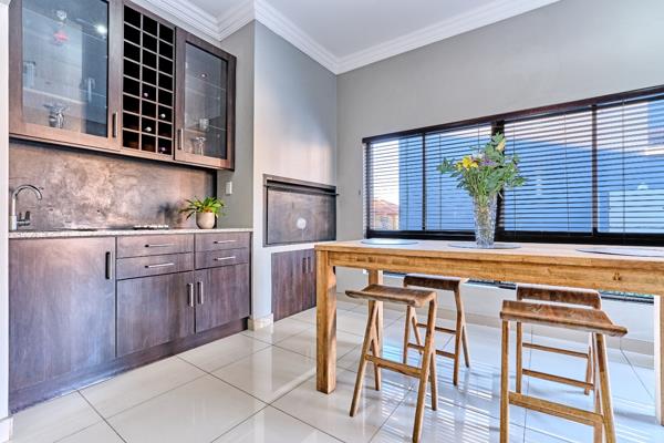 Beautifully tiled throughout, with 3 bedrooms and a study, 2.5 well appointed bathrooms, and an open-plan design that seamlessly connects the lounge, kitchen and entertainment space, complete with a built-in prep and sleek bar area plus an indoor braai - perfect for hosting guests and enjoying time with the family. The spacious main bedroom has ample built-in cupboards plus an en-suite with a double vanity, large shower and corner bath. There is a second full bathroom, a separate scullery with ample cupboard space keeps the kitchen clutter free.