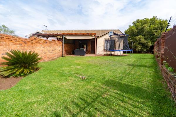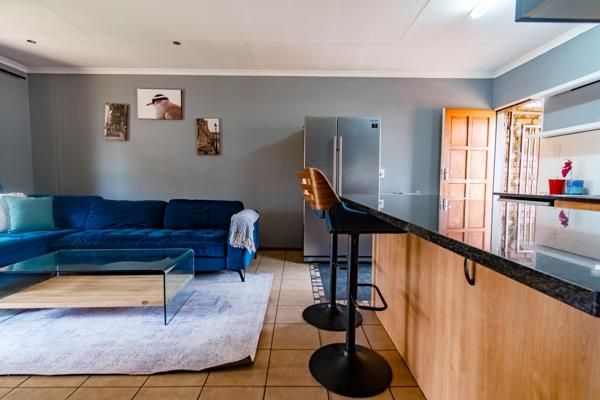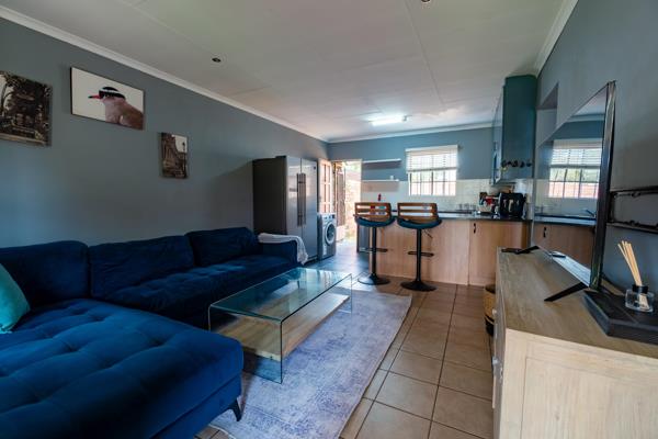 The lounge area opens through a sliding door onto a covered patio, offering a seamless indoor-outdoor experience. Whether you''re sipping your morning coffee or hosting a weekend braai, you''ll love the view of the spacious private garden a fantastic play area for kids or simply a peaceful retreat to enjoy some green space.