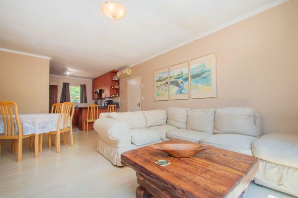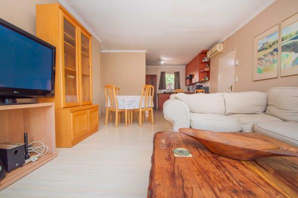 The spacious, open-plan living and dining room areas featuring laminated flooring, air-conditioning warmly welcomes you into the