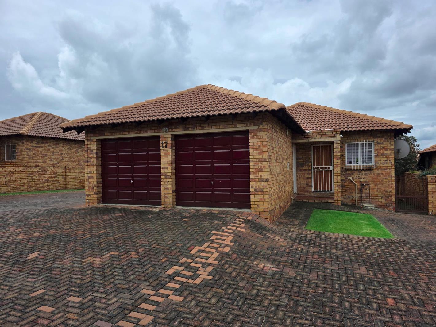 The property also includes a double garage with manual doors, plus additional parking space in front for visitors or extra vehicles.
