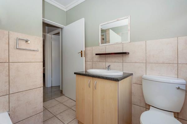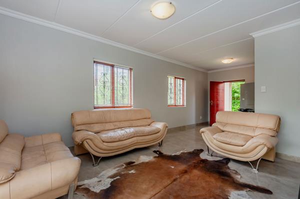 Additional features include a single garage, extra visitor parking, and security features such as burglar bars on all windows for peace of mind.