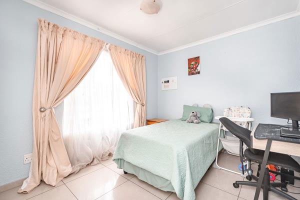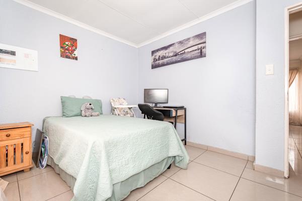 The home offers two generously sized bedrooms with built-in cupboards. The spacious main bedroom enjoys tranquil views over the beautifully maintained complex gardens, while the second bedroom comfortably accommodates a three-quarter bed or serves as an ideal work-from-home office.