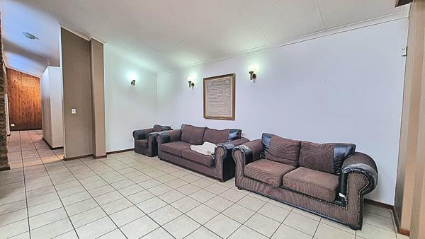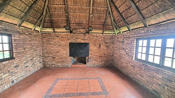 Enjoy quality family time in the fully tiled TV/family room, featuring a built-in bar, stunning wooden ceilings, and sliding doors leading out to a thatched Lapa with built-in braai an entertainers dream!