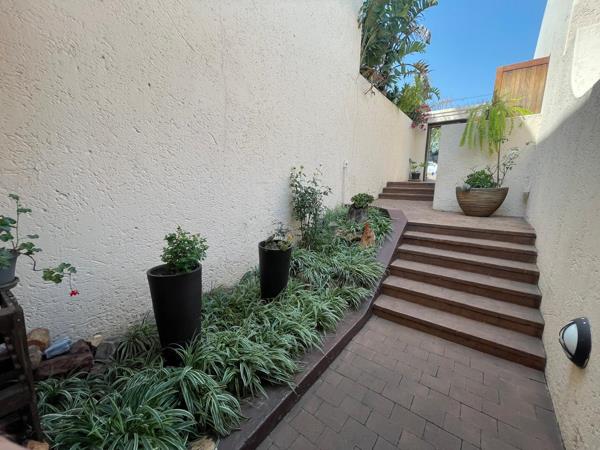 Step inside this charming home and enjoy stunning greenbelt views from the lounge and dining areas. The spacious lounge opens onto a cozy enclosed patio, while the well-appointed kitchen features wooden cupboards and a gas stove. Upstairs, three generous bedrooms offer spectacular views, including a main suite with a dressing area and two built-in wardrobes. Two bathrooms plus a separate toilet provide convenience, and additional storage is available both upstairs and under the stairs. With a double garage, three extra parking spots, full security including alarm, CCTV, palisade fencing, and 24/7 guarded community, this pet-friendly home also comes ready for fibre internet. Peaceful, secure, and invitingthis property is not to be missed!