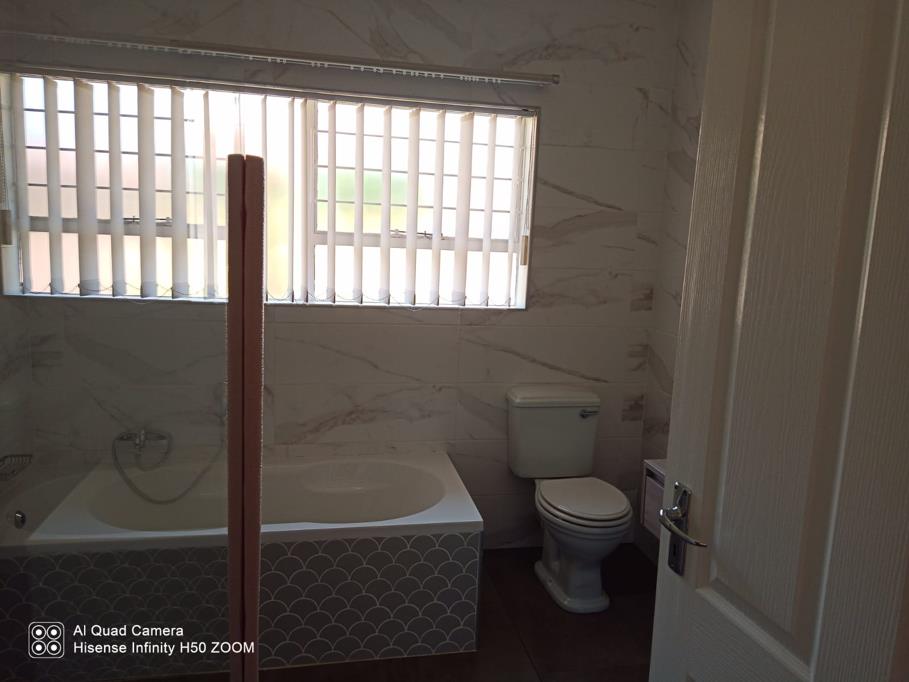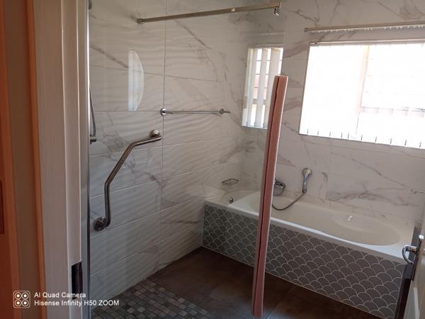The master bedroom is generously sized and carpeted for extra warmth, featuring built-in cupboards and a modern en suite bathroom equipped with both a bath and shower. The second bedroom is also carpeted and has ample cupboard space, while a study provides an additional area for relaxation or work. Modern tiled second bathroom with shower only.