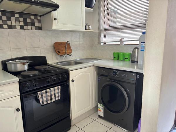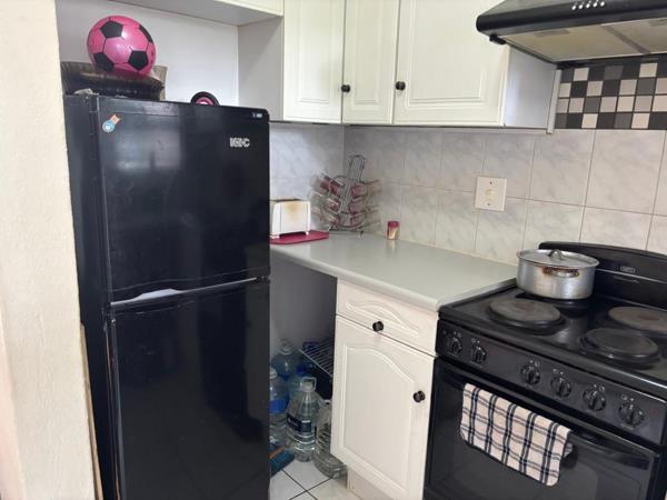 The kitchen is newly tiled and makes provision for a single door fridge and one appliance. The bathroom includes a bath, shower, basin and toilet. The main bedroom is tiled and can accommodate a double bed with built-in cupboards. The second bedroom is tiled with built-in cupboards and is sufficient for a three-quarter bed. undercover parking is provided for all tenants and owners.