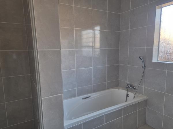 The Main bedroom has built-in cupboards and laminated flooring. A full bathroom with modern tiles, a bath and a shower. A study, which can also serve as a bedroom for a caregiver. with laminated flooring.