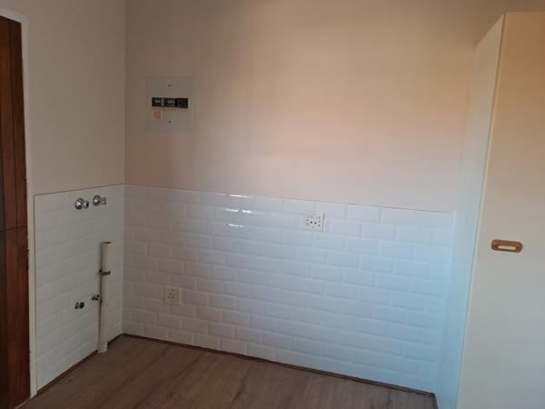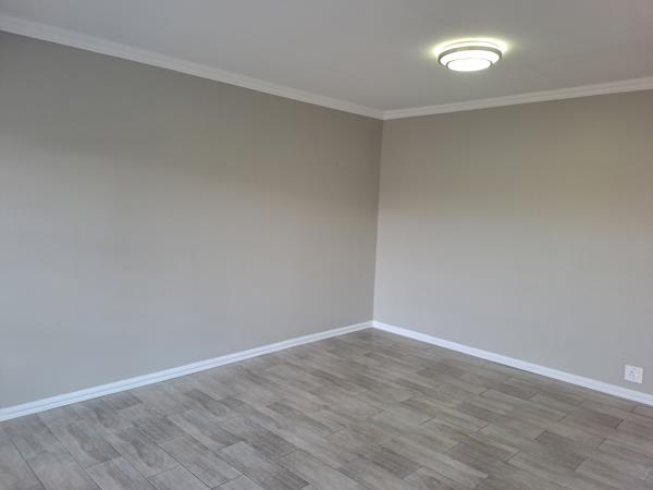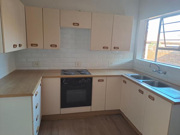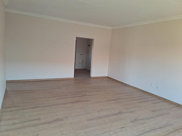 Spacious, open-plan lounge and dining room, kitchen with ample storage space. Back courtyard. Front enclosed patio. Laminated flooring throughout. 2 bedrooms serviced by a full bathroom with bath and shower.