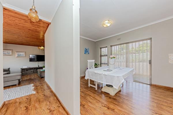 This well-maintained property offers 3 bedrooms, study/work-from-home or 4th bedroom), 2 bathrooms (main en-suite), open plan kitchen, dining room and spacious lounge with lovely laminated floors and direct access to the double garage. Domestic room with own bathroom. Well-kept front and back garden. Good security - windows and entrances fitted with security gates and burglar bars. Priced to sell fast! Superb value!