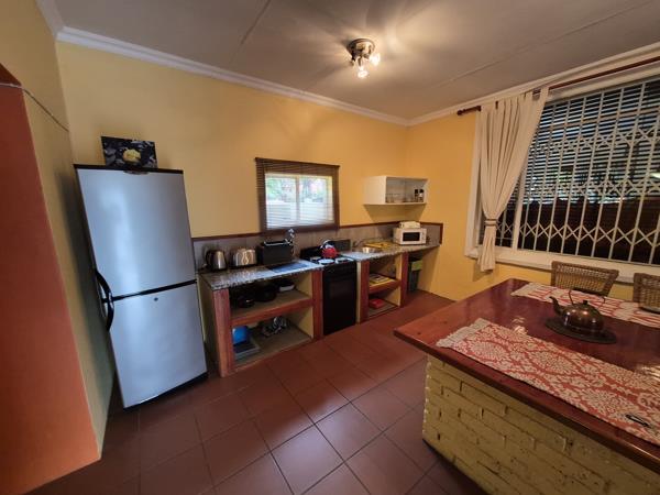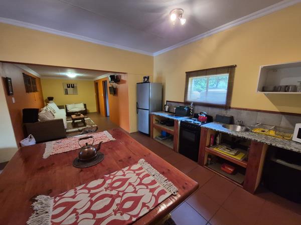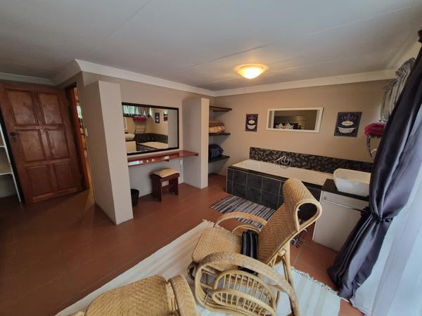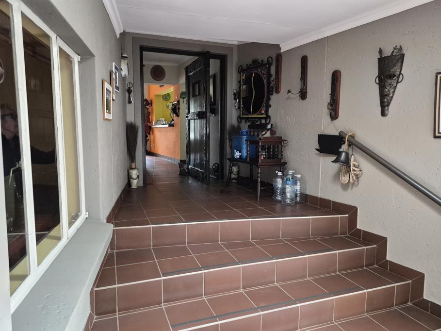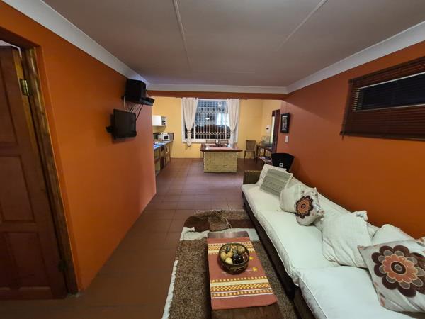 This modern, open-plan masterpiece offers the perfect blend of sophisticated design and rustic charm, featuring seamless terracotta tiling and expansive living spaces tailored for a large family or savvy investor. The property makes an immediate impression with a vast driveway accommodating eight vehicles, a double carport, and an oversized garage with a dedicated workshop. From the elegant foyer, the home splits into two distinct wings: one leading to a sleek, modern two-bedroom flatlet with its own en-suite and open-plan kitchen, and the other to the main residence. The heart of the home is a stunning kitchen boasting Rhodesian Teak countertops and a gaselectric combo stove, flowing into a spacious lounge and a massive master suite that includes a private lounge area, and a luxury open-plan bathroom. Entertainers will love the secondary indoor bar area that opens to a lush green yard, as well as the separate external entertainment buildingcomplete with a kitchenette and bathroomwhich can easily serve as a second flatlet. Practicality is prioritized with a large separate laundry, a storage wendy house, a 5000L backup water system, a generator, and top-tier security including an alarm and comprehensive camera system.