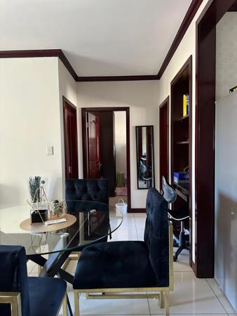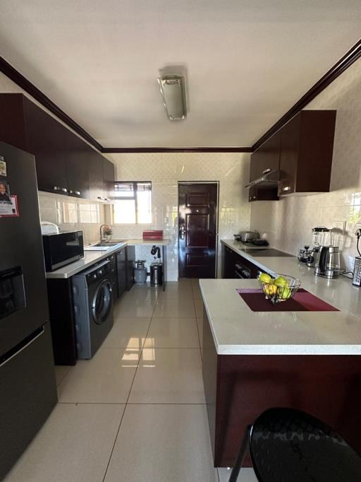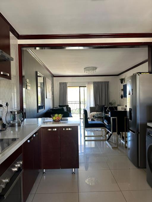 This home offers two spacious bedrooms with built-in wardrobes, tiled flooring and one full luxurious bathroom. The stylish kitchen which is the heart of this home and comes with a gas stove, granite countertops and a scullery with a washing machine and dishwasher connection. An open plan dining room and lounge.